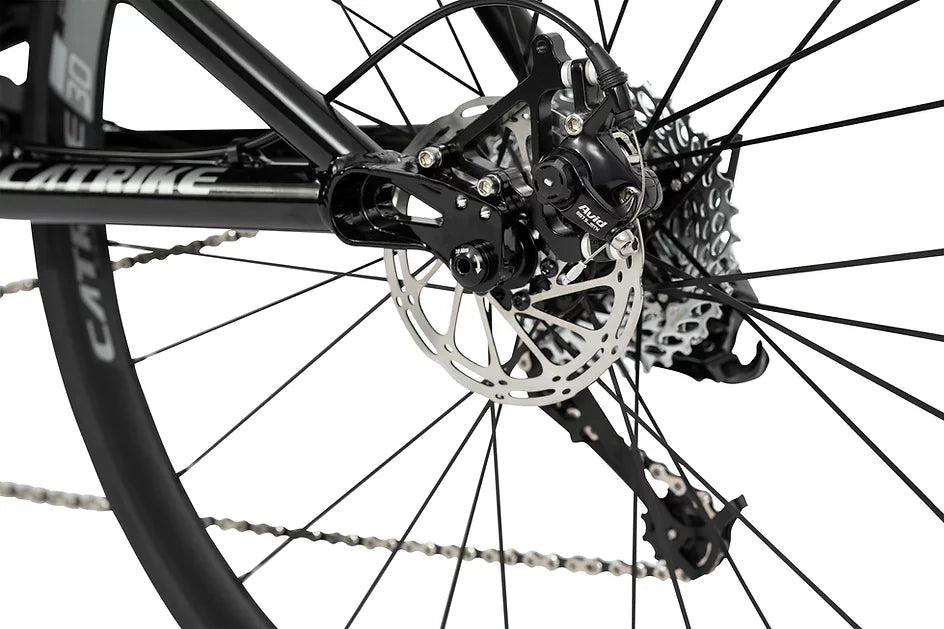 The aerodynamic body position and lightweight vertebrae-spaceframe puts the rider in the perfect position to generate power and speed.