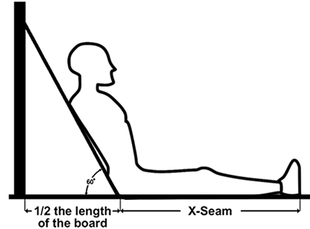 Wear shoes you would typically use for riding. Sit very tight against the bottom of the board, lean back, and stretch your legs out straight with the soles of your shoes perpendicular to the floor. Measure the distance in inches from the front of board to the bottom of your shoe. This is an important measurement so have an assistant help you get an accurate number. See illustration A as an example. And if you have trouble, call us at 916-619-1003 and we would be more than happy to help.