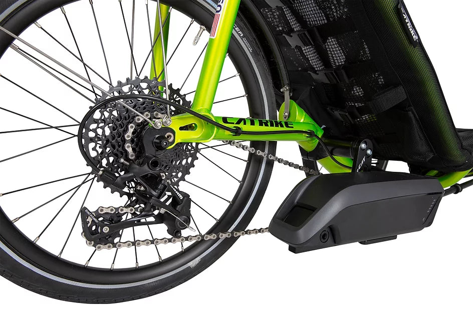 At the heart of the eCAT line is the latest in electric-assist systems from industry leader Bosch. The result is a Catrike with the perfect combination of maximum efficiency, comfort, and riding enjoyment. The efficient and versatile Active Line Plus electric-assist drive mated to a 1 x 11 drivetrain (11 - 42 cassette / 44 tooth chainring) provides dynamic performance – guaranteeing an authentic riding sensation with minimal pedaling resistance. It delivers active and sporty acceleration even at low cadences, offering powerful assistance as soon as you step on the pedals. In addition, the system’s multi-sensor technology and fast information processing ensure optimum interaction between you and your eCAT.