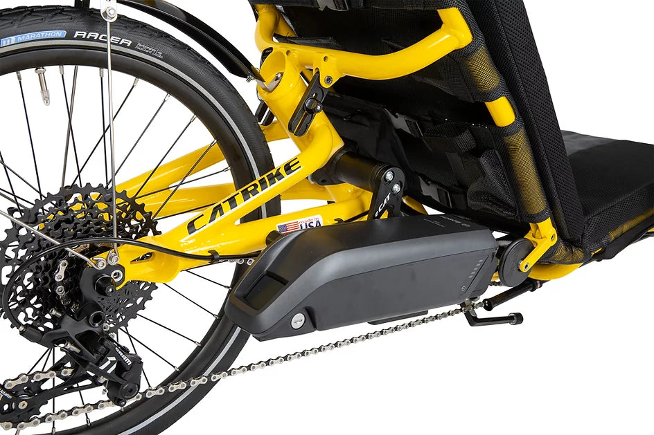 At the heart of the eCAT line is the latest in electric-assist systems from industry leader Bosch. The result is a Catrike with the perfect combination of maximum efficiency, comfort, and riding enjoyment. The efficient and versatile Active Line Plus electric-assist drive mated to a 1 x 11 drivetrain (11 - 42 cassette / 44 tooth chainring) provides dynamic performance – guaranteeing an authentic riding sensation with minimal pedaling resistance. It delivers active and sporty acceleration even at low cadences, offering powerful assistance as soon as you step on the pedals. In addition, the system’s multi-sensor technology and fast information processing ensure optimum interaction between you and your eCAT.