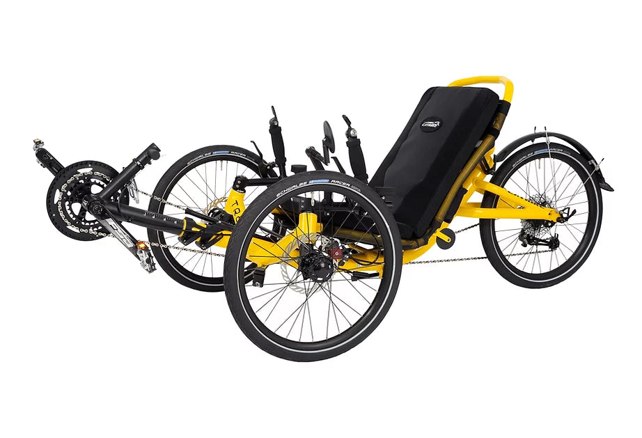 It is well designed and is thoughtfully equipped with top-tier components to deliver worry-free performance. For comfort and portability, the Trail features a well-padded seat mounted to a fully adjustable, foldable frame. The Catrike proprietary hand rests offer adjustable support for long rides while the integrated computer mount and stock rear view mirror ensure you have all the information to be safe and efficient while riding. All these features combine to provide unbeatable performance at an unbeatable price.